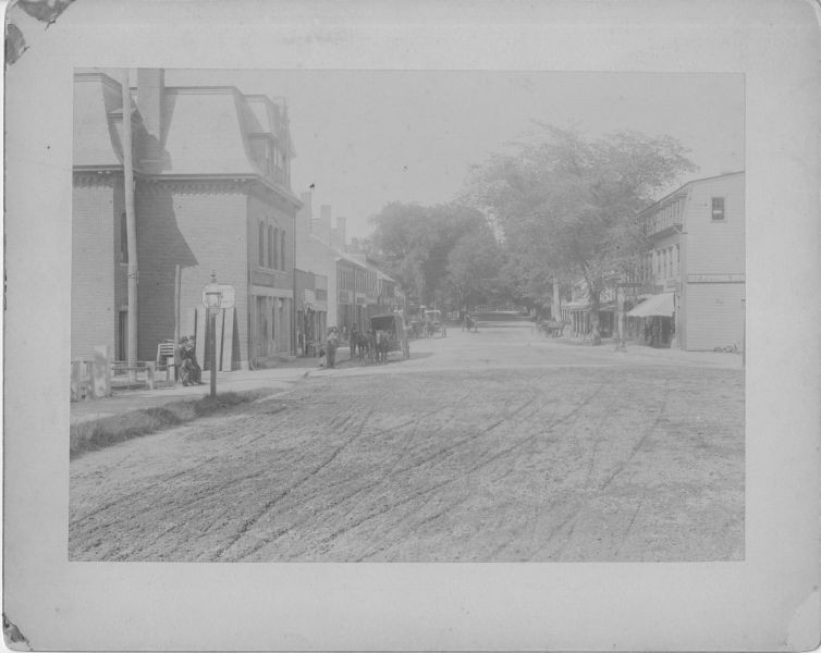 Looking west down Main Street from the current flag pole in Concord Center. Probably from the 1870's