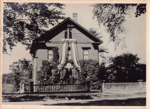 Corinthian Lodge in July 1897 decorated for the centennial celebration of the lodge.